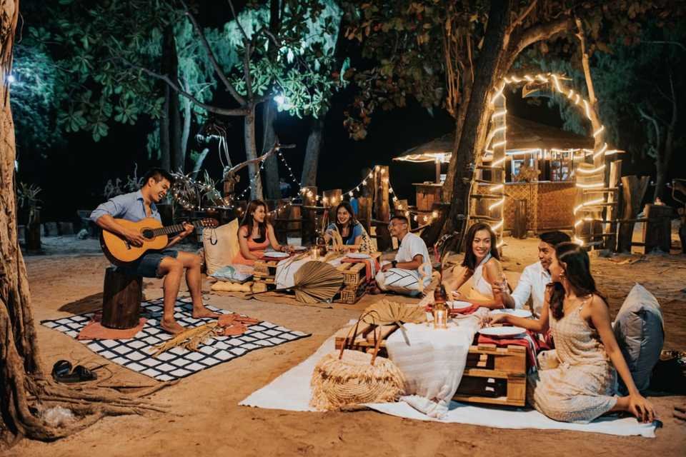 Di malam hari Anda bisa berpesta barbeque di tepi pantai yang pastinya akan sangat seru. Menikmati ikan segar yang baru saja ditangkap dan langsung dipanggang tentu akan menjadi menu istimewa yang jarang kita temui sehari-hari. Akan lebih indah lagi bila saat itu bulan purnama sedang bersinar terang. Keesokan harinya lanjutkan acara wisata Anda dengan bermain perahu atau kayaking. Pengelola telah menyediakan persewaan wahana permainan air tersebut lengkap dengan dayungnya juga jaket pelampung. Jangan lupa mengoleskan tabir surya pada tubuh dan wajah untuk menghindari terbakar matahari.